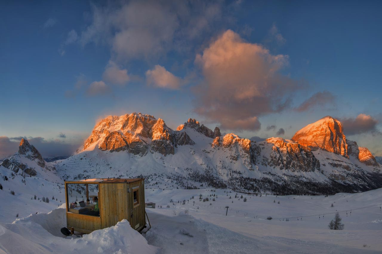 Un bureau ne doit pas forcément être ennuyeux. Il vous suffit de louer cette cabine surplombant les Dolomites pour que votre bureau à domicile se transforme en un endroit idéal.
