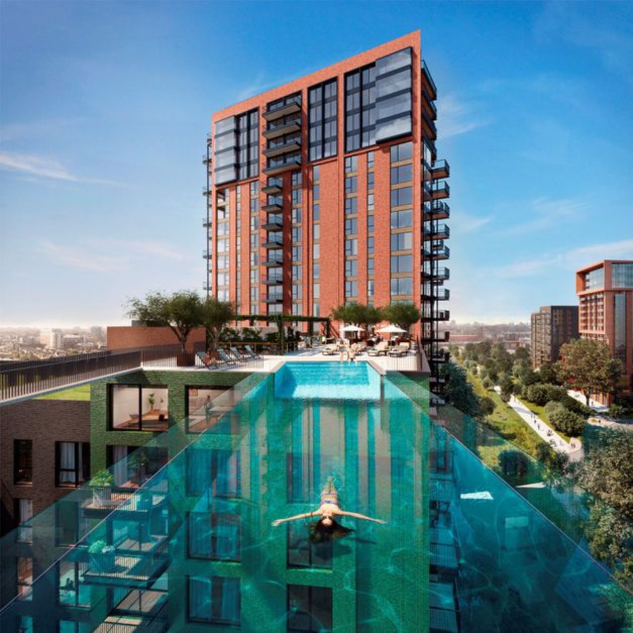 Cette étonnante piscine à fond de verre, qui ouvrira en 2021, reliera deux bâtiments des "Embassy Gardens", à 35 mètres de hauteur. La construction fait partie du nouveau quartier de Nine Elms, autour du développement de la centrale électrique historique de Battersea.