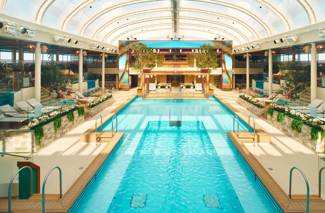 Equipement : Spa et centre de bien-être / nombreux restaurants / bars et salons / bibliothèque / casino / théâtre / boutiques / salle de jeux / discothèque / piscines / terrains de sport / salle de fitness / club enfants
