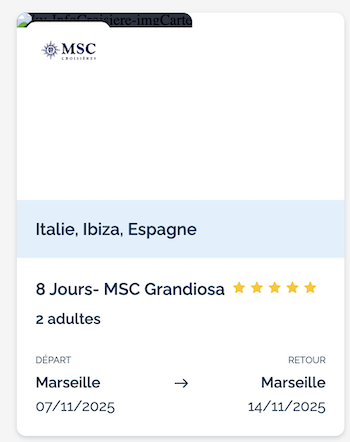 Embarquez pour une croisière inoubliable en Méditerranée ! Explorez plusieurs destinations, plongez dans l’histoire et admirez des panoramas spectaculaires le long des côtes ensoleillées. Une aventure alliant détente, culture et divertissement vous attend.