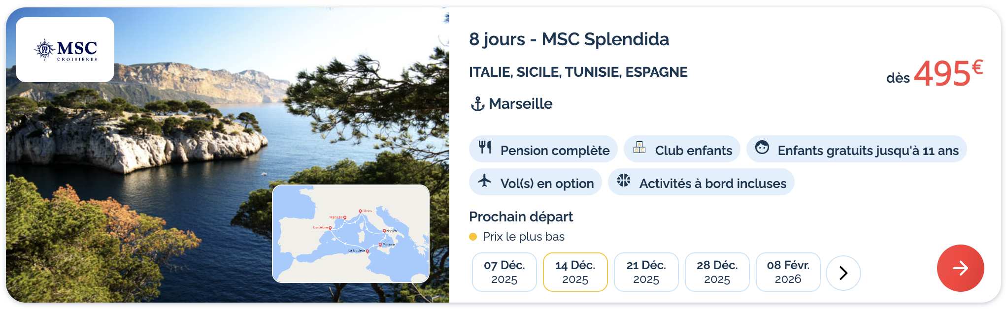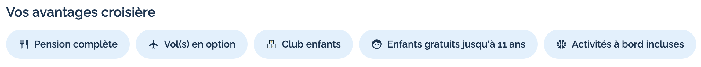 Le port des bagages et les taxes portuaires sont déjà pris en charge, pour un séjour sans imprévus. Et l’offre devient encore plus intéressante avec la gratuité pour les enfants jusqu’à 11 ans, idéale pour les familles.
