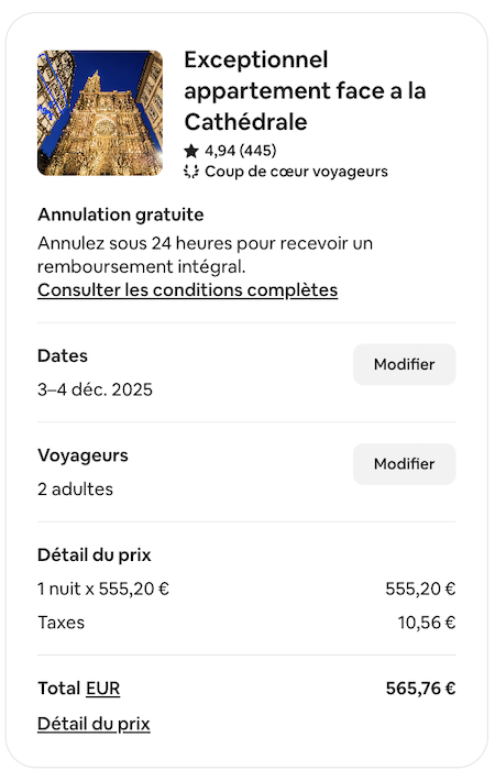 🚨 Alerte pépite ! Offrez-vous un weekend de 2 jours à Strasbourg et installez-vous dans un Airbnb magnifique, en plein cœur du centre, avec la cathédrale comme toile de fond. Dès le départ, l’emplacement est un bijou : vous êtes à deux pas des chalets lumineux des marchés de Noël, des senteurs de vin chaud, des sapins et de l’effervescence douce de la ville.