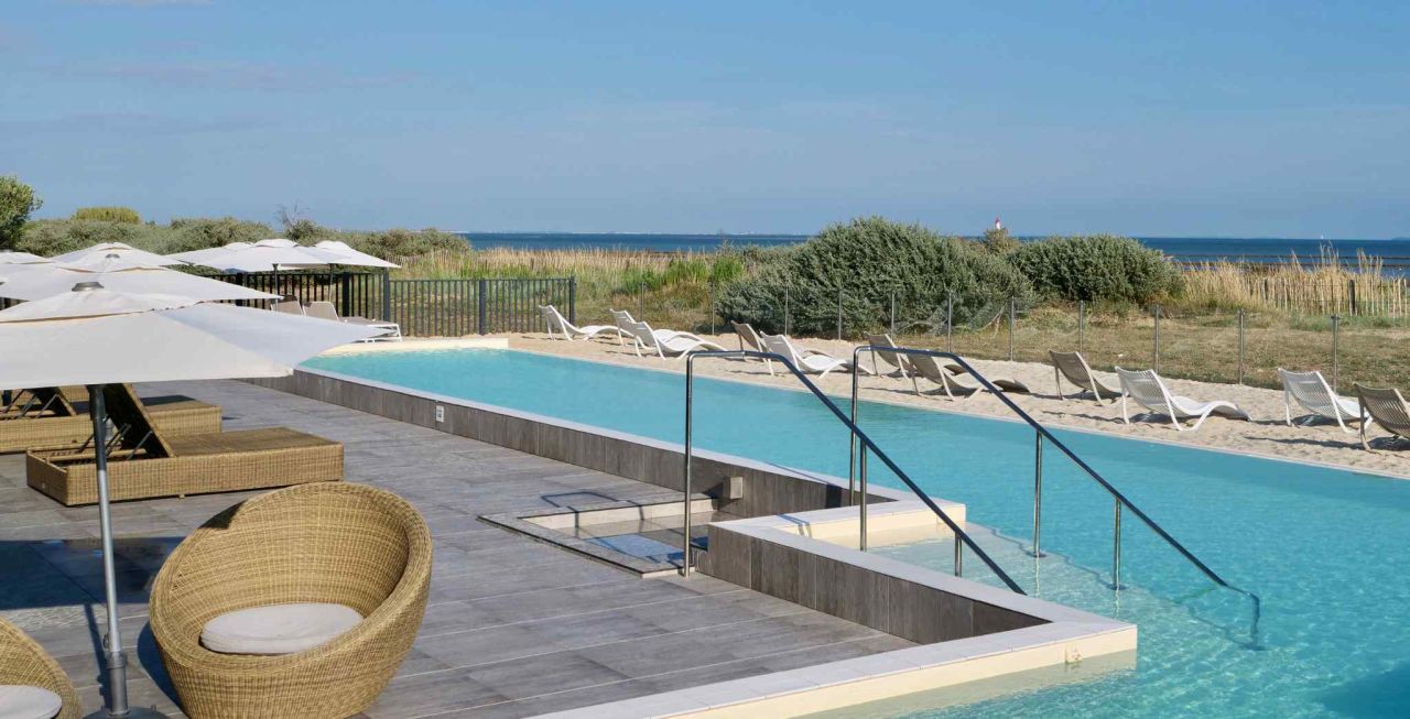 Vous séjournez à Saint Martin de Ré, en bord de plage, dans un superbe hôtel 4* qui dispose d'une piscine, d'un spa et d'un hammam.