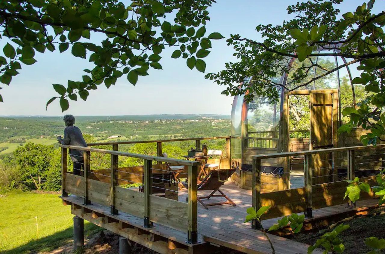 Equipement : dôme transparent / petit déjeuner / vue sur le château de Turenne