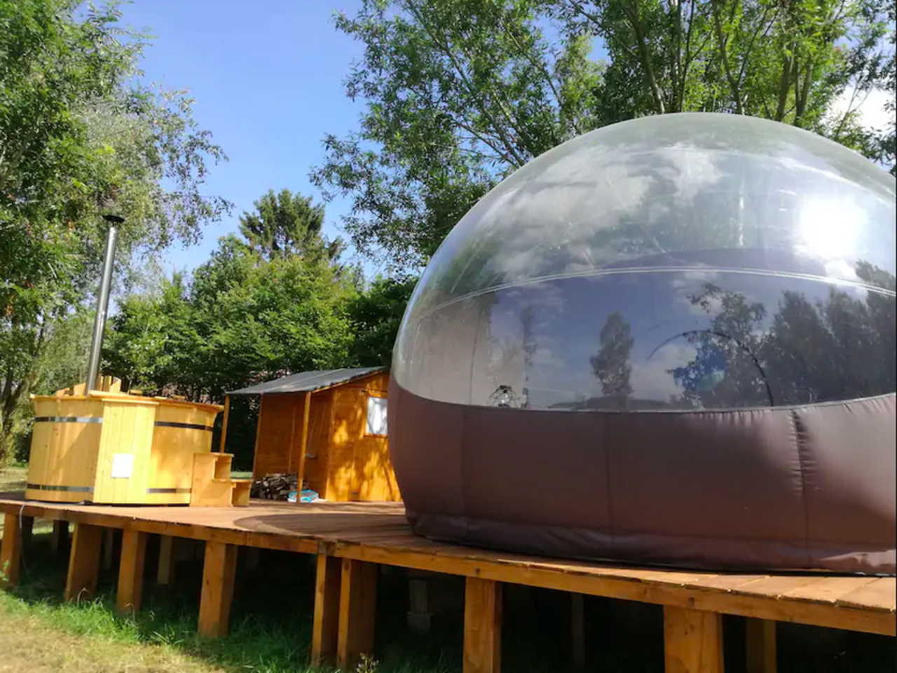 Je vous propose aujourd'hui un logement insolite : une maison dôme, ou bulle ouverte sur le ciel, avec bain suédois privatif.
