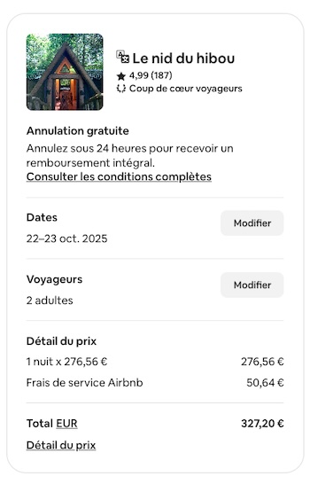 Exemple de séjour du 22 au 23 octobre 2025 :