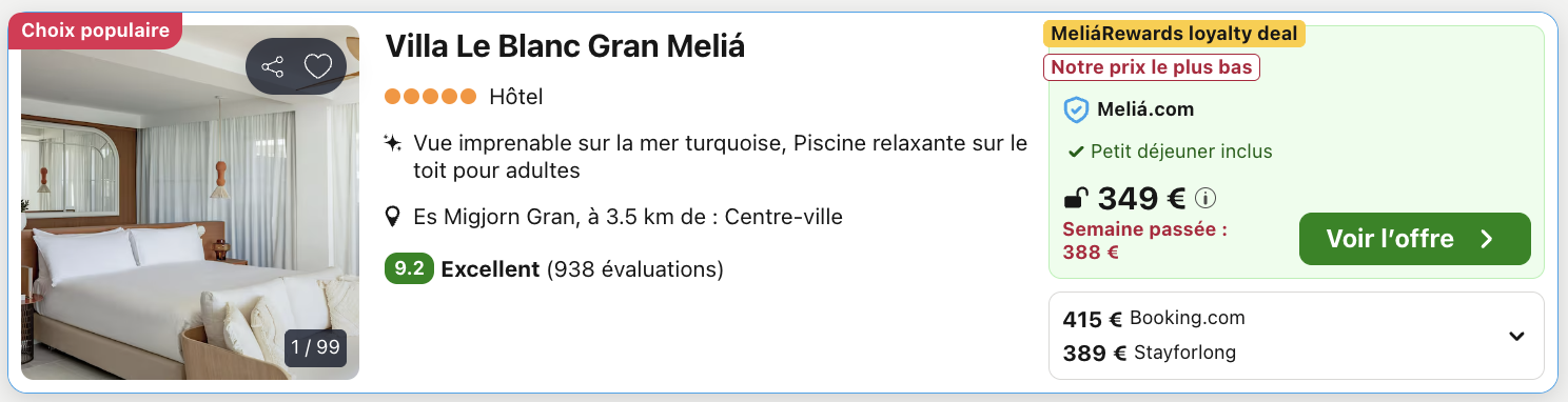 Certes, on parle ici de 175€ par personne, mais pour un établissement de ce standing, c’est un rapport qualité-prix vraiment imbattable. Un court séjour qui vous offre le confort d’un palace et l’évasion d’une île méditerranéenne. Le genre de parenthèse chic qu’on n’oublie pas de sitôt ✨.