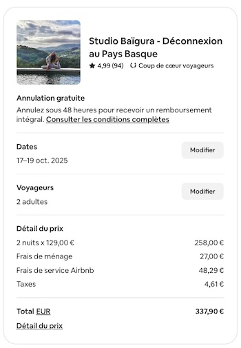 Exemple de séjour du 17 au 19 octobre 2025 :