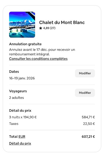 Exemple de séjour du 16 au 19 janvier 2026 :