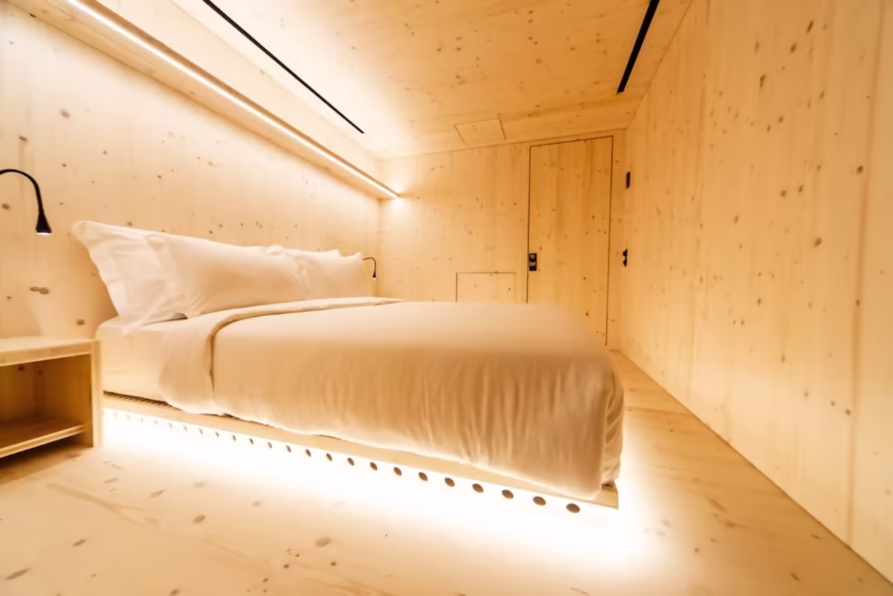 Le Zero Box Lodge est un hôtel situé dans une ancienne banque au concept plutôt original : toutes les chambres sont aménagées dans des caisses en bois ! Ambiance cosy & cocooning garantie !