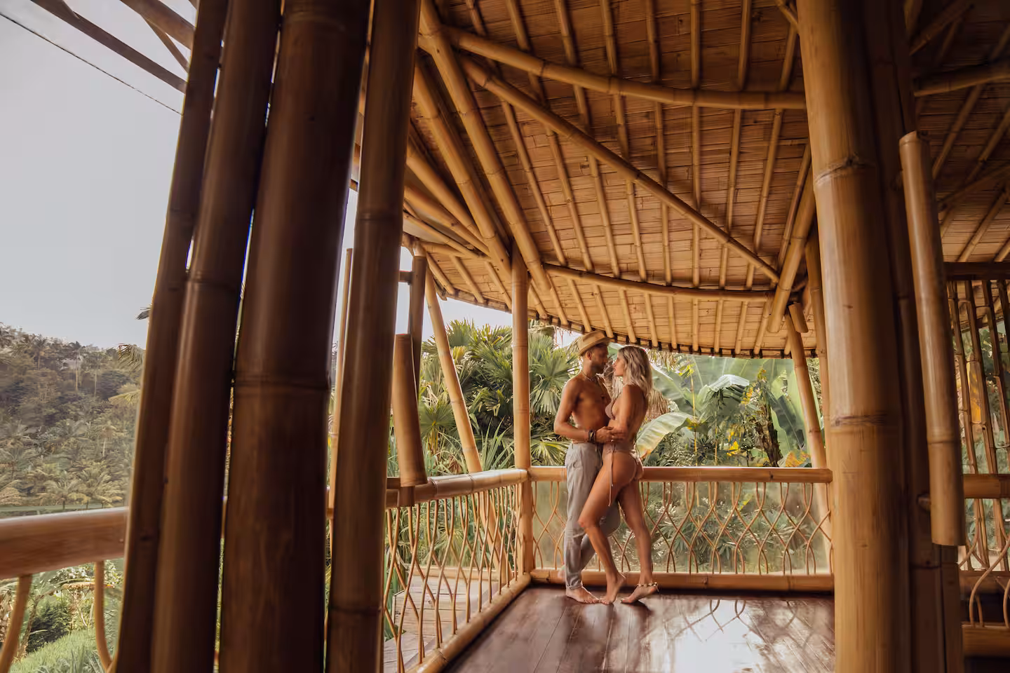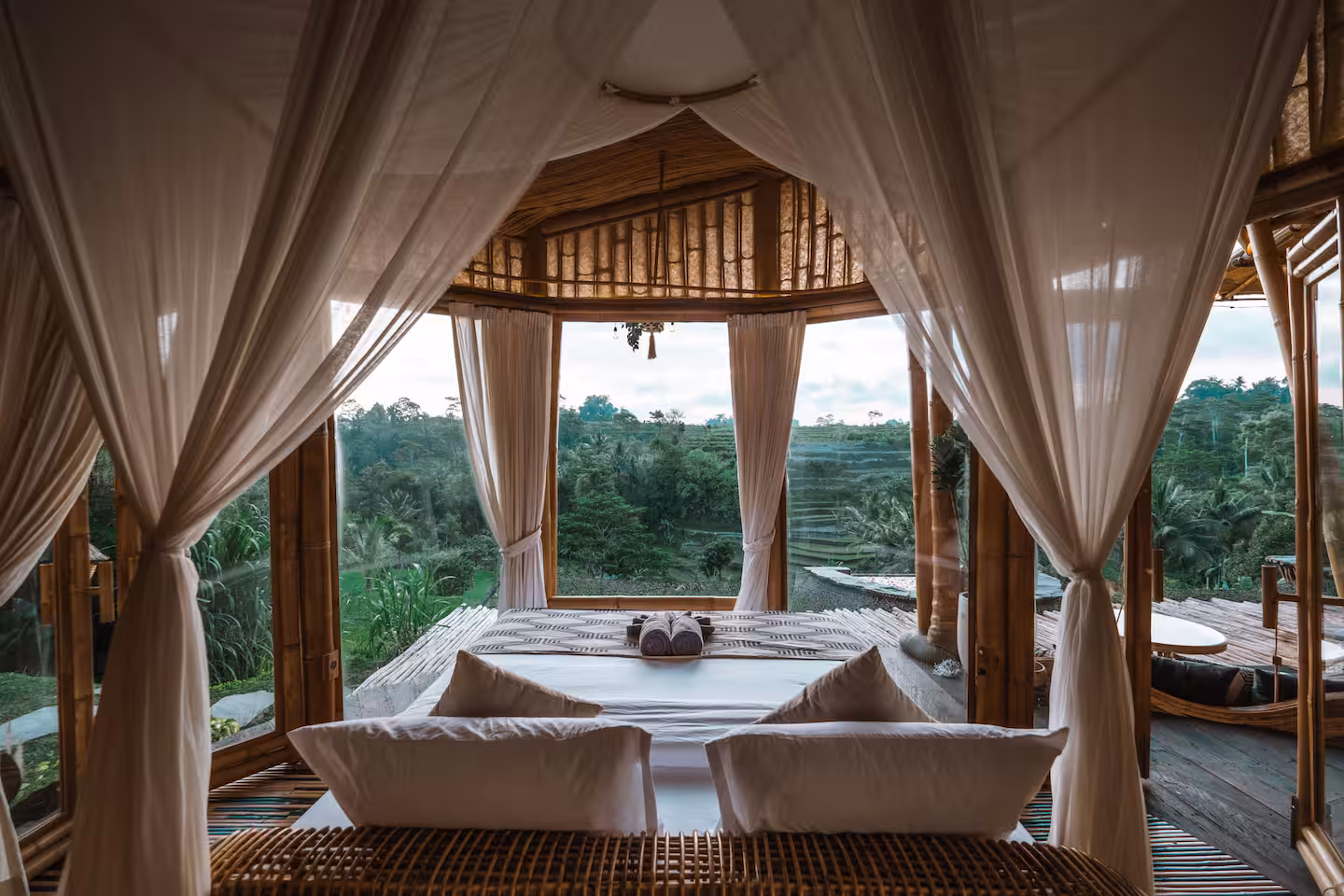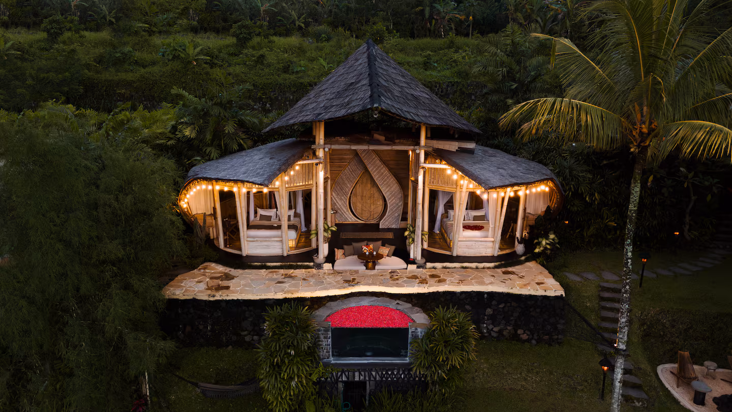 Dormir dans une maison en bambou perchée au milieu des rizières de Bali, ça ressemble à un rêve… et pourtant, c’est bien ce que propose Camaya Bali. Nichées dans la vallée verdoyante de Selat, ces villas spectaculaires offrent une immersion totale dans la nature balinaise.