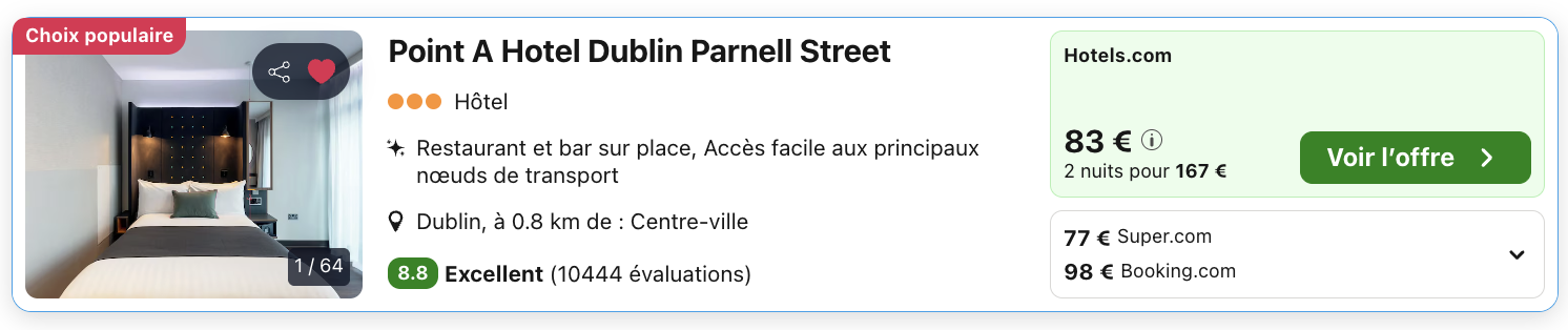 A noter : les prix sont corrects au moment de la publication, sur la base des exemples de dates fournis, et sont soumis à des fluctuations, en fonction des disponibilités.