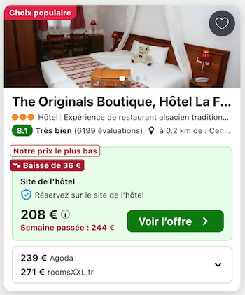 A noter : les prix sont corrects au moment de la publication, sur la base des exemples de dates fournis, et sont soumis à des fluctuations, en fonction des disponibilités.