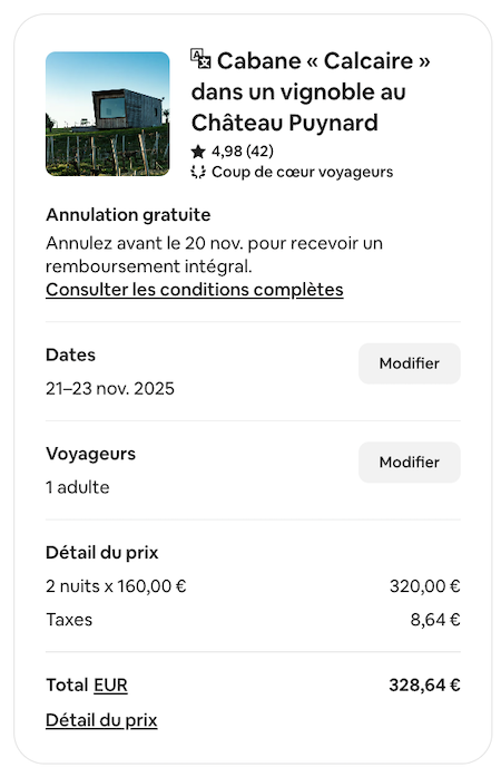 Exemple de séjour du 21 au 23 novembre 2025 :