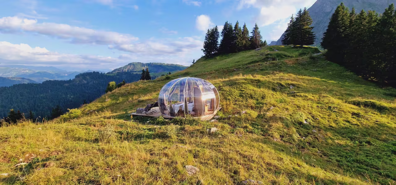 Nuit insolite en dôme panoramique avec vue à 360° sur la chaîne des Aravis ! 😍