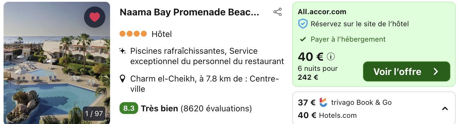 A noter : les prix sont corrects au moment de la publication, sur la base des exemples de dates fournis, et sont soumis à des fluctuations, en fonction des disponibilités.