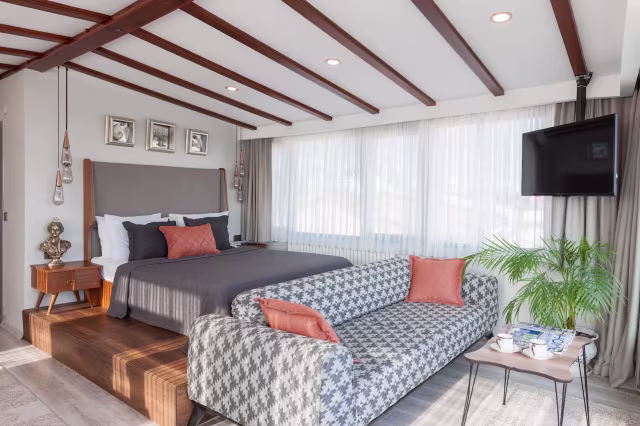 Du rooftop de lâhĂŽtel, vous profiterez dâune vue panoramique sur le Bosphore, la MosquĂ©e Bleue et Sainte-Sophie, c'est le genre de panorama qui vous fait vibrer dĂšs le matin. Le petit-dĂ©jeuner inclus est servi terrasse/terrasse-rooftop, pour commencer vos journĂ©es avec le ciel au-dessus et la ville Ă vos pieds.