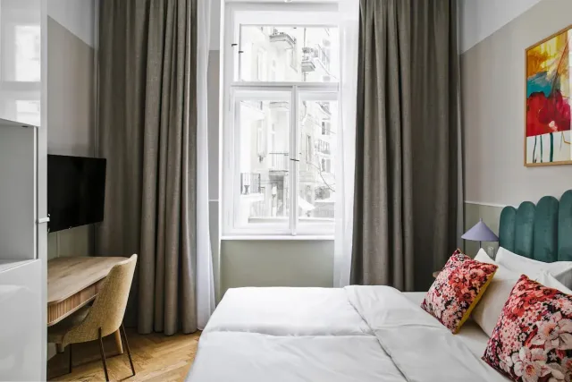 Les chambres sont décorées avec soin, très lumineuses, certaines avec kitchenette, balcon, ou vue sur la ville, et le confort est vraiment au rendez-vous. Sa localisation est un avantage de taille : vous êtes à courte marche des grands classiques : le pont Charles, la Vieille Ville, les cafés qui sentent la cannelle et le vin chaud.