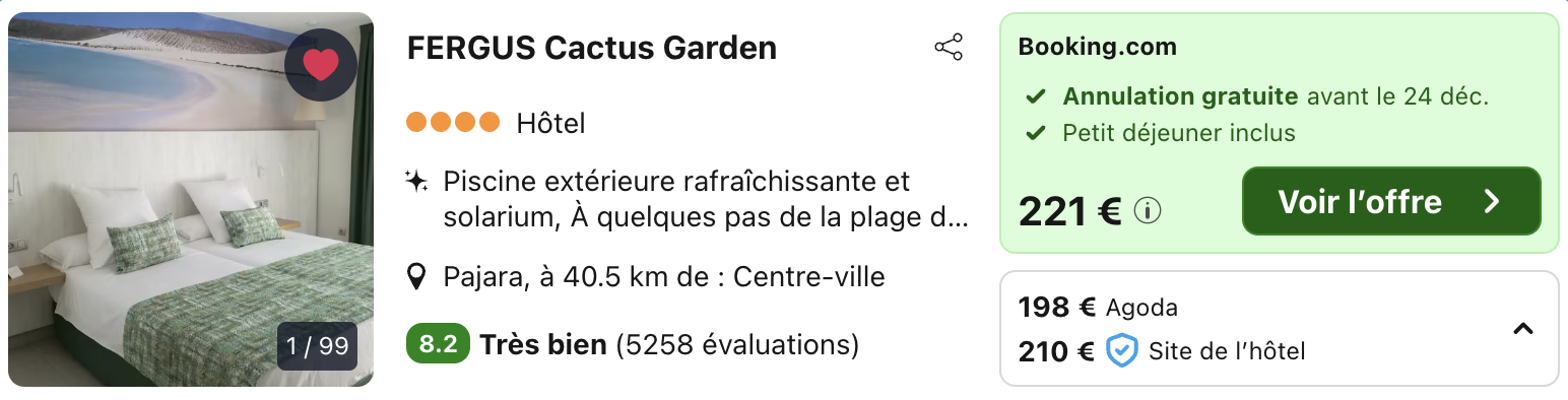 A noter : les prix sont corrects au moment de la publication, sur la base des exemples de dates fournis, et sont soumis à des fluctuations, en fonction des disponibilités.
