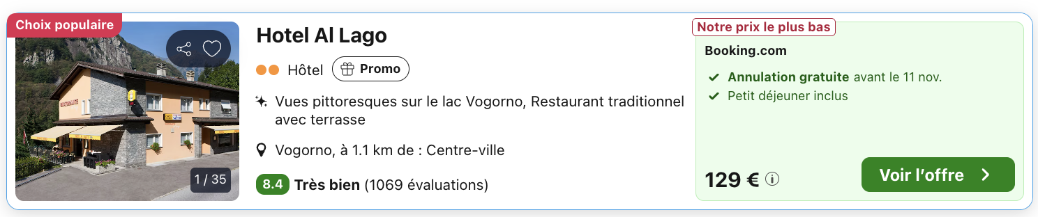 Connaissez-vous dĂ©jĂ ce petit bijou suisse ?đšđđČ DĂ©couvrez-le en sĂ©journant dans un hĂŽtel confortable face au lac de Vogorno, petit-dĂ©jeuner inclusđ§