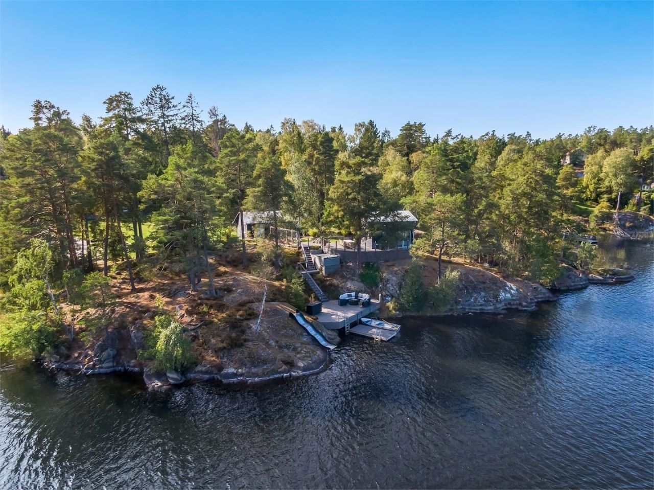 Mais c'est bien l'extérieur qui constitue le principal atout avec sa terrasse équipée pour y prendre les repas, sa plage privée, son jacuzzi et son sauna avec vue sur le lac. Pour expérimenter à 100% le mode de vie suédois en accord avec la nature.