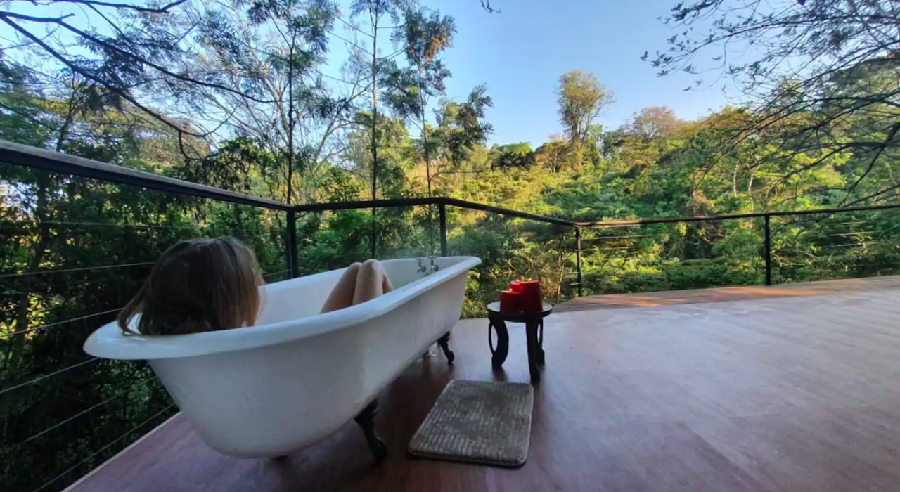 Un point de départ idyllique avant votre safari vous attend. Cette magnifique cabane, pourtant à Nairobi, vous offre un calme et un dépaysement rêvé avec vue sur la vallée et la rivière. Perchée dans les arbres, la terrasse dispose d'un coin pour feux de bois et d'une baignoire extérieur afin d'entendre les oiseaux à l'aube ou bien regarder les étoiles depuis votre bain.