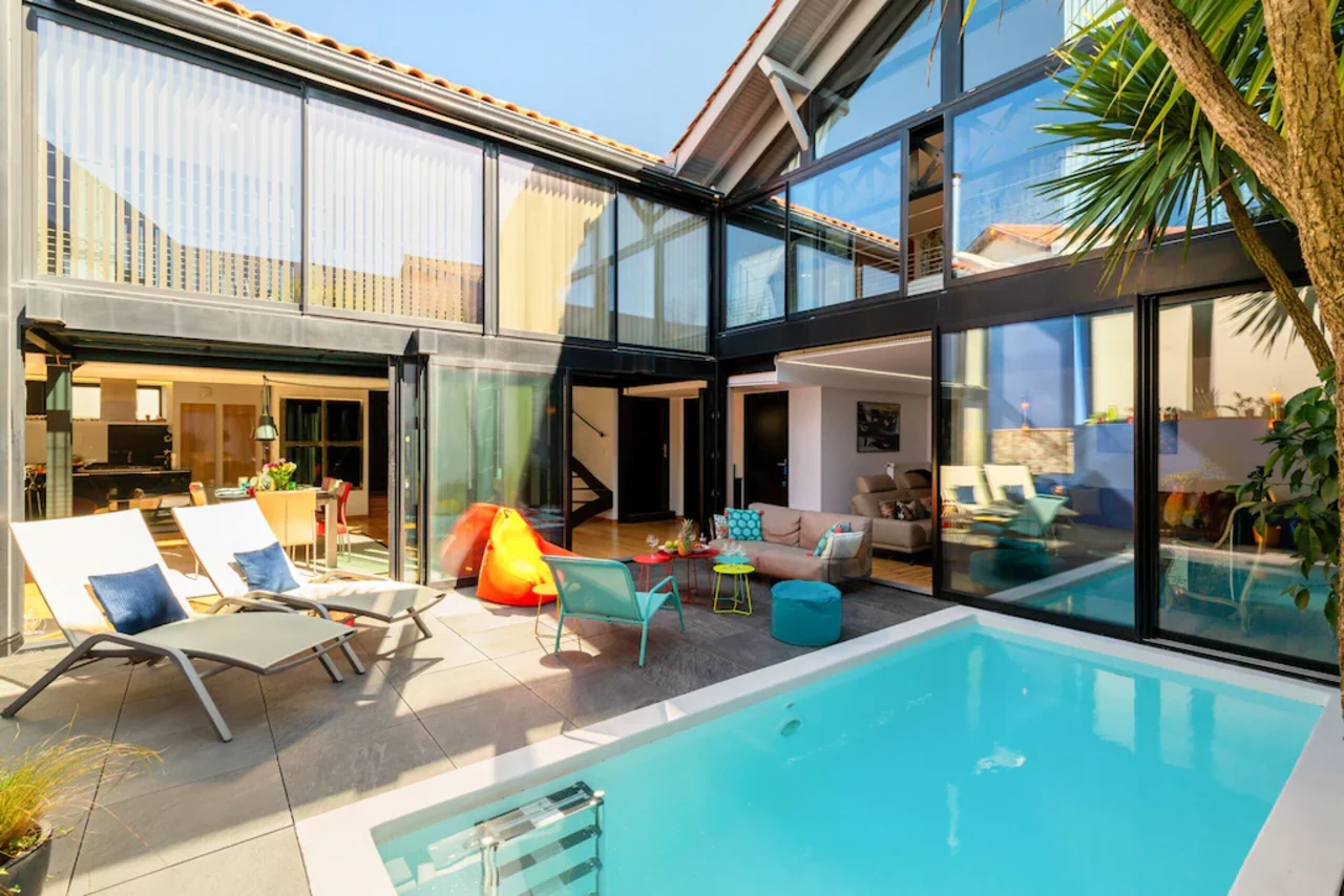Nous vous proposons de séjourner dans une magnifique villa contemporaine de 220m2 située en centre-ville avec piscine chauffée et entièrement équipée.