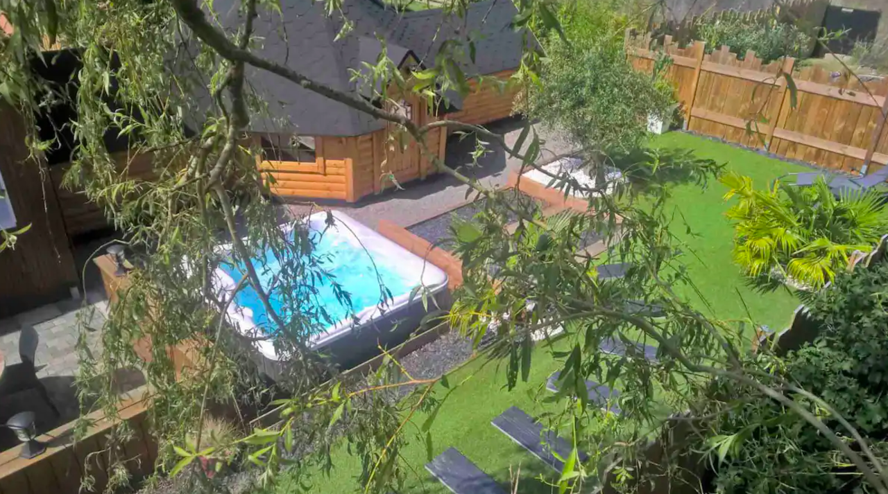 Equipement : Jacuzzi / jardin / télévision / gîte avec 2 chambres / coin salon / barbecue / cuisine équipée / salle d'eau avec WC / salon de jardin / parking