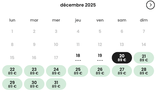 Exemple de séjour du 24 au 25 décembre 2025 :
