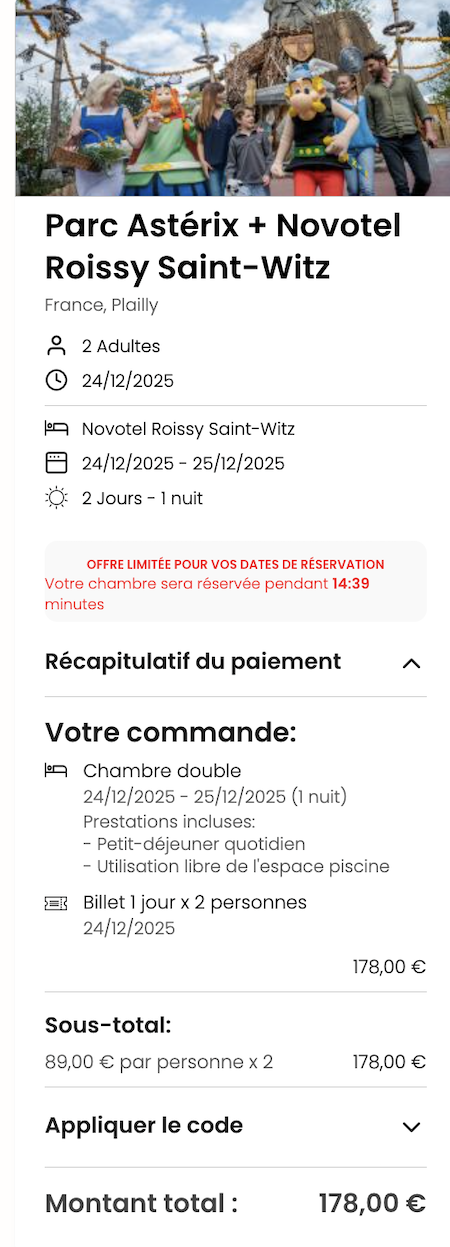 Nuit dans un hĂŽtel proche du Parc + petit-dĂ©jeuner + billet 1 jour đą Dispo pendant les fĂȘtes de fin dâannĂ©e đ