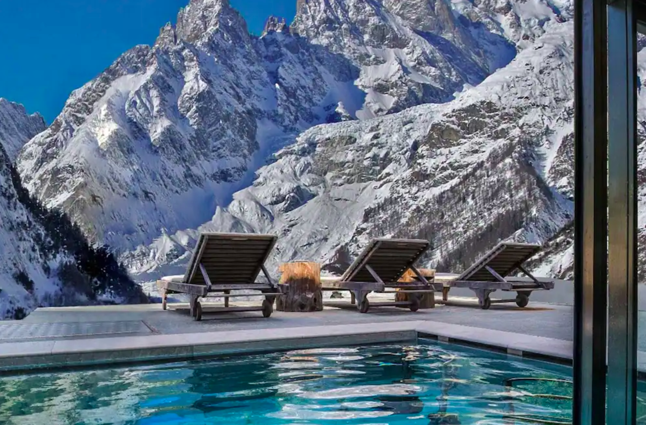 Direction les Alpes en Italie, à la frontière avec la France dans cet hôtel 4* niché au pied du Mont Blanc, un décor de rêve. Que ce soit au coin du feu dans le salon, depuis votre balcon ou à la piscine chauffée avec vue sur le sommet, vous serez éblouis par les paysages.