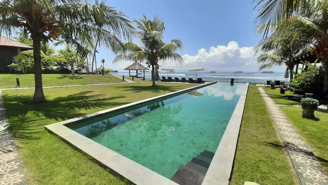 Découvrez cet incroyable hôtel 4* face à l'océan avec vue panoramique sur le détroit de Lombok. Vous pourrez y profiter de deux piscines à débordement, d'une plage privée et des nombreux soins proposés. Le rêve, non ?