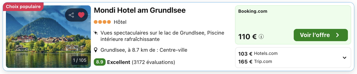 A noter : les prix sont corrects au moment de la publication, sur la base des exemples de dates fournis, et sont soumis à des fluctuations, en fonction des disponibilités.