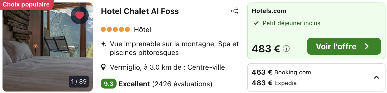A noter : les prix sont corrects au moment de la publication, sur la base des exemples de dates fournis, et sont soumis à des fluctuations, en fonction des disponibilités.