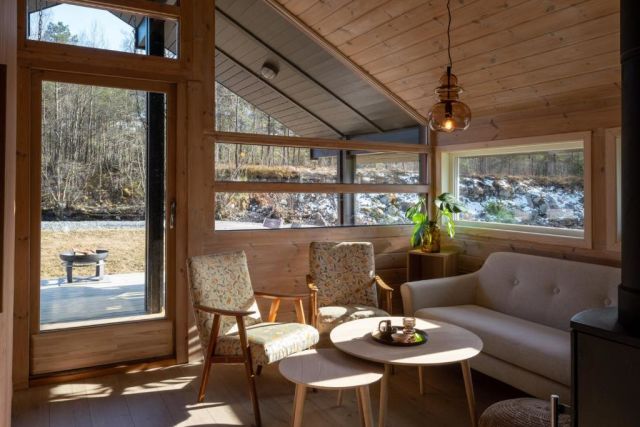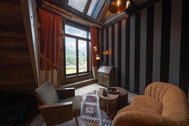 Vous séjournerez au Jølstraholmen Landskapshotell, un lodge design avec vue panoramique sur la rivière et les fjords, jacuzzi et sauna privatifs (dans certains logements), et une atmosphère cosy pour profiter pleinement du cadre naturel. L’endroit est parfait pour les amoureux de nature, de tranquillité et de paysages nordiques.
