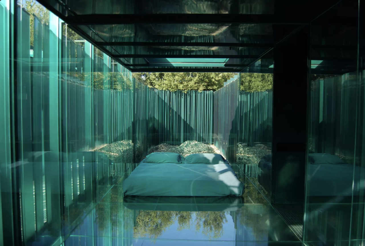 Constitué de pavillons de verre cachés derrière une façade ordinaire, l'hôtel est une véritable prouesse architecturale qui efface la frontière entre intérieur et extérieur. Les chambres sont sobres et réduisent l'expérience au minimum : vous n'y trouverez qu'un lit et un minibar.