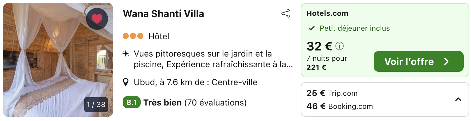 Bali, c’est aussi une île aux mille découvertes : explorez les rizières en terrasse, partez à la rencontre des temples sacrés, flânez dans les marchés locaux ou laissez-vous tenter par un massage traditionnel balinais. Profitez de cette parenthèse à prix tout doux. 💫