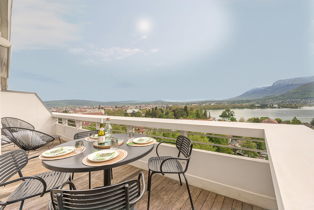 Rendez-vous dans un appartement à l'entrée de la vieille ville d'Annecy qui vous offre une vue panoramique sur le lac.