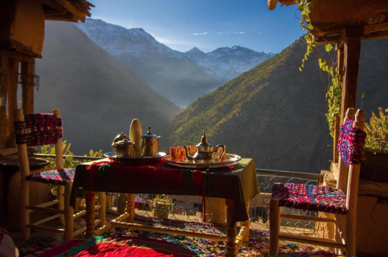 Vous réveiller en flanc de montagne, avec une vue imprenable sur les environs, ça vous tente ? C'est ce que je vous propose ici avec cette superbe guesthouse marocaine, proche de Marrakech et à quelques kilomètres seulement du parc national de Toubkal.