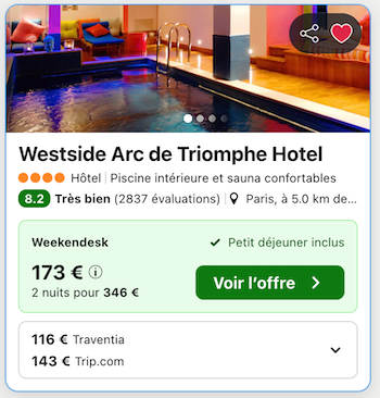 Nom de l'établissement : Hôtel Westside Arc de Triomphe Hotel 4*