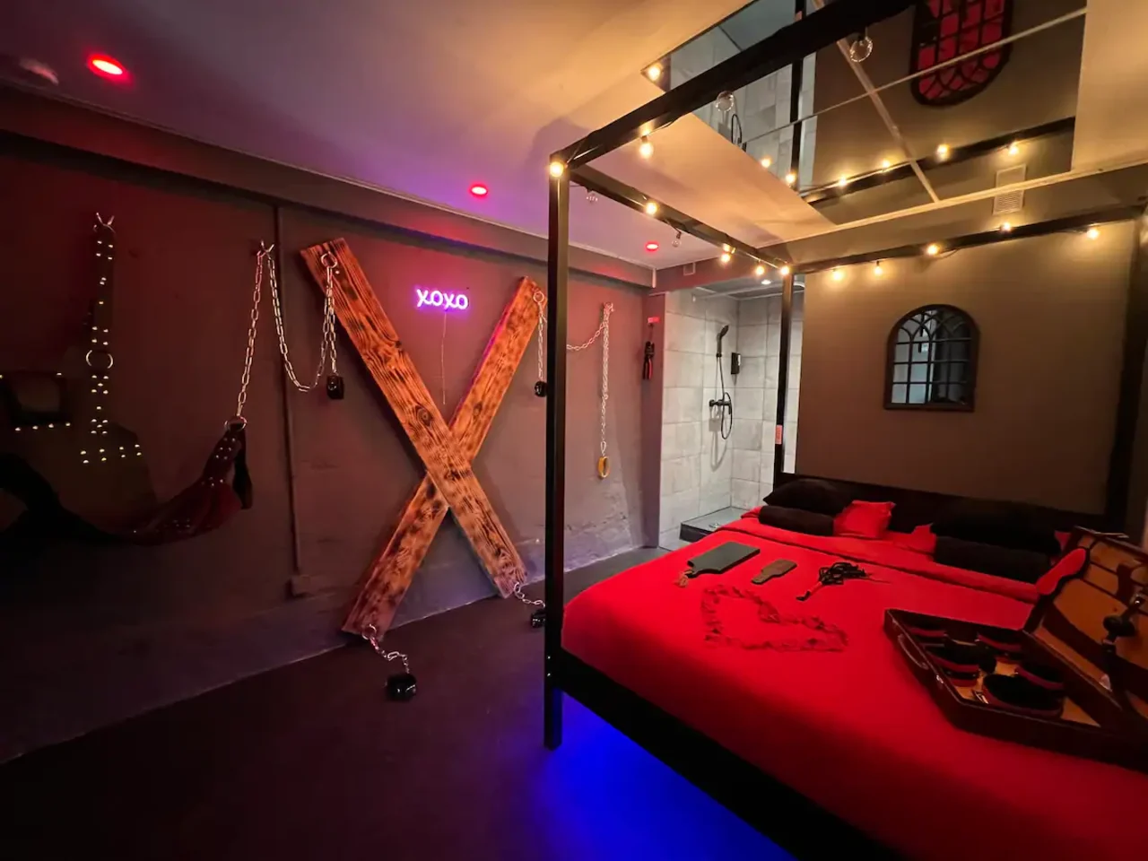 Sur place, tous les kinks sont permis : vous trouverez une salle de jeu qui se prêtera à tous vos fantasmes. Menottes, kit d'accessoires (offert !), miroir au plafond, croix de Saint-André, sling et bien d'autres jouets seront à votre disposition pour organiser une nuit inoubliable. Notez que les murs sont parfaitement isolés 😉