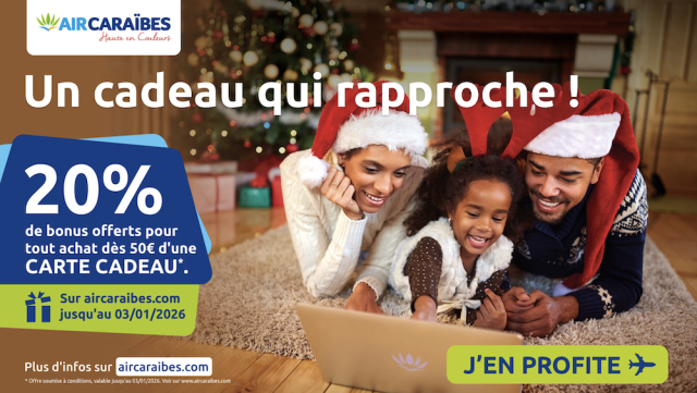 Pour les fêtes, Air Caraïbes relance ses cartes cadeaux, un format très apprécié des voyageurs qui rêvent des Antilles. Flexibles, idéales pour contribuer à un futur billet et pensées pour encourager les voyages de 2026, bref...parfaites tous les, amoureux de la Caraïbe.
