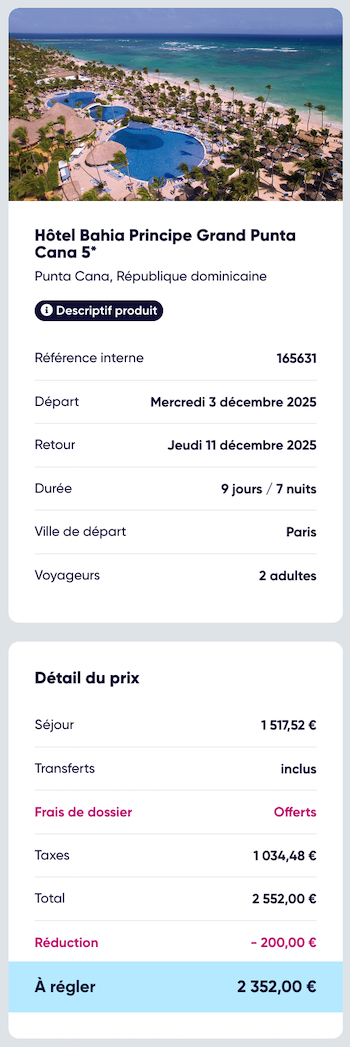 Et si cet hiver, vous troquiez les manteaux contre le maillot ? À Punta Cana, décembre rime avec chaleur, palmiers et plages infinies de sable blanc typiques de la République Dominicaine. Le thermomètre affiche 27°C, la mer est turquoise, et la seule question du jour sera : sieste ou mojito ? Pour moins de 1200€ par personne... Honnêtement, à ce prix-là, on n'a qu'une envie : booker direct !