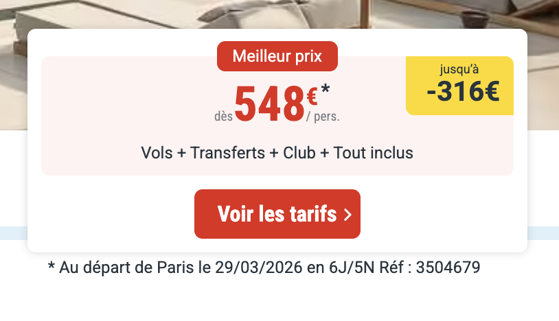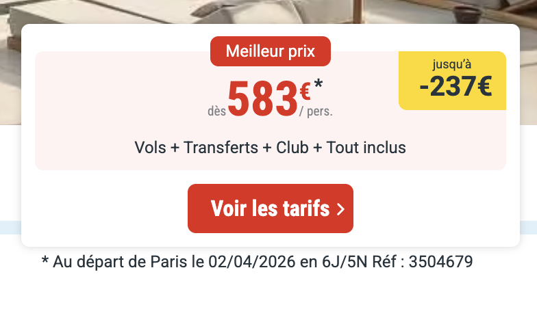 À noter : les prix sont corrects au moment de la publication, sur la base des exemples de dates fournis, et sont soumis à des fluctuations, en fonction des disponibilités.