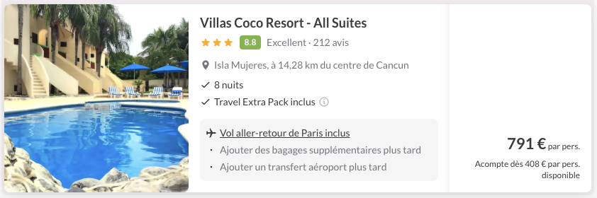 A noter : les prix sont corrects au moment de la publication, sur la base des exemples de dates fournis, et sont soumis à des fluctuations, en fonction des disponibilités.