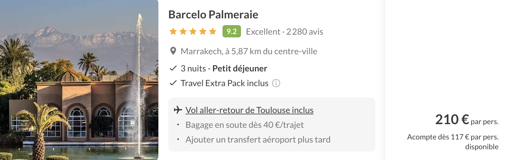 A noter : les prix sont corrects au moment de la publication, sur la base des exemples de dates fournis, et sont soumis à des fluctuations, en fonction des disponibilités.