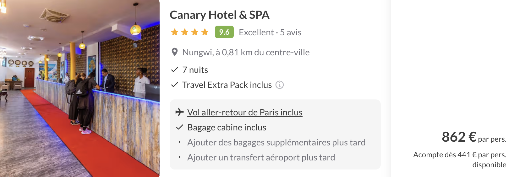 A noter : les prix sont corrects au moment de la publication, sur la base des exemples de dates fournis, et sont soumis à des fluctuations, en fonction des disponibilités.