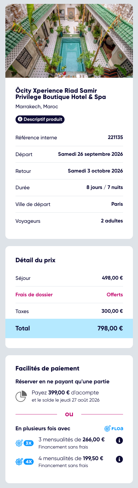 Exemple de séjour à Marrakech du 26 septembre au 3 octobre depuis Paris :