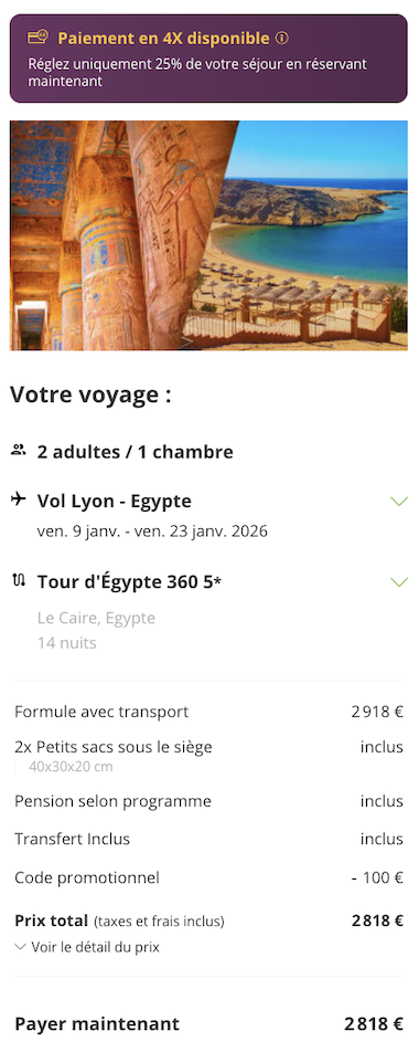C'est vraiment l'offre parfaite pour profiter au maximum des merveilles dont l'Egypte regorge.
