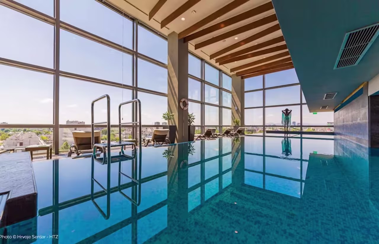 Mais ne restez pas cloîtrés dans votre peignoir ! Zagreb est une capitale à taille humaine bourrée de charme. Filez prendre le funiculaire (le plus court du monde !) pour rejoindre la Ville Haute, admirez le toit coloré iconique de l'Église Saint-Marc ⛪️ et vivez la culture café locale rue Tkalčićeva ☕️. Pour l'insolite, un tour au célèbre Musée des Relations Rompues (lieu dédié aux relations amoureuses qui finissent mal) est obligatoire ! De retour à l'hôtel, plouf dans la piscine panoramique pour décompresser. Le mix parfait entre culture et détente. 🇭🇷